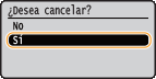 Cancelación desde una aplicaciónEn algunas aplicaciones, aparecerá una pantalla como la siguiente. Puede cancelar la impresión haciendo clic en [Cancelar].