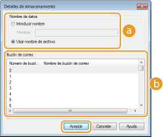 Especifique las opciones para almacenar documentos y haga clic en [Aceptar].