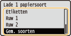 Maak een keuze uit <Lade 1 papiersoort> tot <Lade 4 papiersoort> en druk op