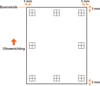 voor de afdrukpositie afgedrukt. Bepaal aan de hand van deze markeringen de aan te passen richting en afstand. Als de afdrukpositie normaal is, worden alle markeringen afgedrukt op een positie 5 mm vanaf de dichtstbijzijnde papierrand.