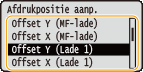 Voor <Offset X (2-zijdig)> kiest u eerst de papierbron en stelt u dan de afdrukpositie in.