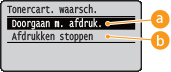 <Doorgaan m. afdruk.> of <Afdrukken stoppen>