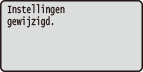 Geef op hoe lang (seconden) een bericht over een veranderde instelling moet worden weergegeven. Als u <Uit> selecteert, wordt het bericht niet langer weergegeven.
