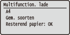 Selecteer deze optie om het momenteel opgegeven papierformaat en -type weer te geven, en het resterende papierniveau voor iedere papierbron.