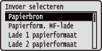 De instellingen voor de papierbron en het papierformaat dat in het apparaat is geladen, worden in een lijst geplaatst en kort toegelicht. Als u