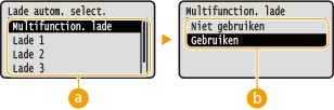 Als <MF-lade vr mix ppr.> is ingesteld op <Aan>, wordt het papier bij voorkeur uit de papierlade gehaald, ook als <Prioriteit MF-lade> is ingesteld op <Aan>.