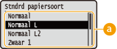 Algemene instellingenDe instellingen zijn hetzelfde als die voor <Papierbron> in het Menu Instellingen. De hier opgegeven instellingen gelden ook voor de instellingen <Papierbron>.
