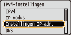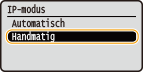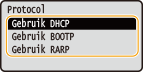 Selecteer <Gebruik DHCP>, <Gebruik BOOTP>, of <Gebruik RARP>, en druk op