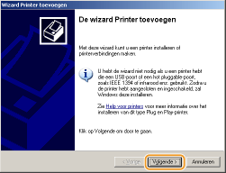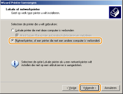 Selecteer [Netwerkprinter, of een printer die met een andere computer is verbonden] en klik op [Volgende].