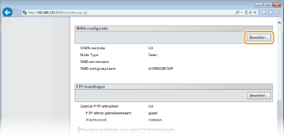 Een eventuele werkgroepnaam die is ingesteld in [Werkgroepnaam] onder [SMB-instellingen] wordt automatisch gebruikt voor [SMB-werkgroepnaam]. Als de werkgroepnaam wordt veranderd in [SMB-werkgroepnaam], wordt dit ook toegepast op [Werkgroepnaam] onder [SMB-instellingen].