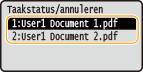 Annuleren vanuit de externe UIU kunt het afdrukken annuleren vanuit de pagina [Taakstatus] van de UI op afstand: De huidige status van afdruktaken controleren