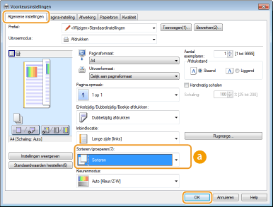 Als u afdrukken wilt maken van documenten met meerdere pagina's, selecteert u [Sorteren] om complete sets op volgorde af te drukken. Deze functie is handig bij het voorbereiden van hand-outs voor vergaderingen of presentaties.