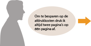 Geef [2 op 1] op als de gebruikersstandaard in het printerstuurprogramma. De volgende afdruktaken worden zodanig verricht dat elke twee pagina´s worden verkleind en op één pagina worden afgedrukt. De standaardinstellingen wijzigen