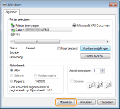De manier waarop u het afdrukvenster weergeeft, kan per programma verschillen. Raadpleeg voor meer informatie de Help van het programma dat u gebruikt.
