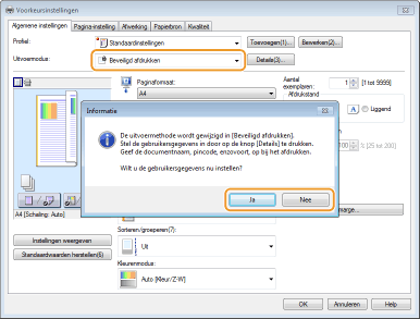 Selecteer [Beveiligd afdrukken] in [Uitvoermodus].