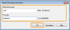 Voer de gebruikersnaam voor [Gebruikersnaam] en de pincode voor [Pincode] in en klik op [OK].