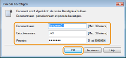 Voer de [Documentnaam], [Gebruikersnaam] en [Pincode] in en klik op [OK].