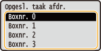Wijs een naam toe om de gegevens die op de SD-card moeten worden opgeslagen, af te drukken. Selecteer het nummer van het vak om het document op te slaan. U kunt een naam aan het vak toewijzen om het makkelijker te herkennen.