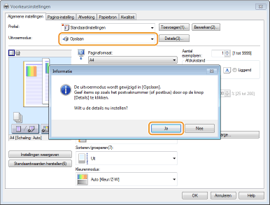 Selecteer [Opslaan] in [Uitvoermodus] en klik op [Ja].