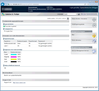 U kunt '<hostnaam van het apparaat>.<domeinnaam>' invoeren in plaats van 'IP-adres van het apparaat' (voorbeeld: http://mijn_printer.voorbeeld.com).