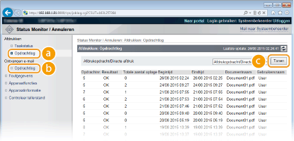 De status van alle afdruktaken wordt weergegeven, ongeacht de instellingen van het afdelings-ID-beheer.