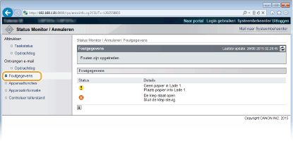 Neem de juiste maatregelen overeenkomstig het bericht op het scherm van het apparaat. Er wordt een foutbericht weergegeven