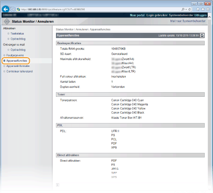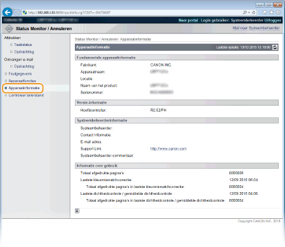 [Beheerinstellingen] op de pagina [Instellingen/registratie] (Het wachtwoord van de systeembeheerder instellen).