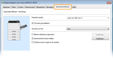 Klik op het tabblad [Apparaatinstellingen] en geef de vereiste instellingen op.