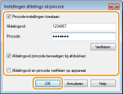 Schakel het selectievakje [Afdeling-ID beheer inschakelen] in en klik op [OK].