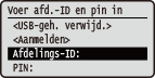 Voer maximaal zeven cijfers voor de pincode als deze is ingesteld voor de Afdelings-ID.