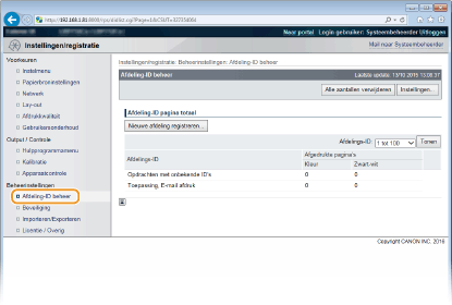 Klik op [Afdeling-ID beheer] en registreer of bewerk Afdelings-ID's.