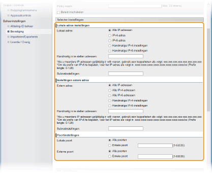 Selecteer deze optie om een specifiek IPv6-adres of een bereik van IPv6-adressen op te geven waarvoor u IPSec wilt gebruiken. Typ het IPv6-adres (of het bereik van adressen) in het tekstvak [Handmatig in te stellen adressen].