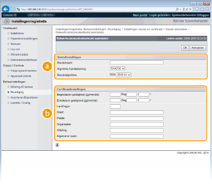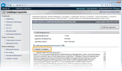 U kunt het sleutelpaar dat is gegenereerd door het Certificate Signing Request (CSR) pas gebruiken als het certificaat is geregistreerd. Registreer het digitale certificaat wanneer de certificeringsinstantie het heeft uitgegeven en volg daarvoor onderstaande procedure.