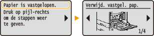 Als u het vastgelopen papier gaat verwijderen, moet u het apparaat niet uitschakelenAls u dat doet, gaan de afdrukgegevens namelijk verloren.