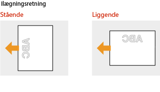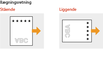 Når du bruger papir med fortrykt logo på, skal du være opmærksom på papirets retning, når du ilægger det. Ilæg papiret korrekt, så udskrivning udføres på den rigtige side af papiret med logo.