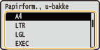 Hvis du ofte ændrer formatet for det indlagte papir, kan du angive <Fri størrelse>, hvilket sparer dig besværet med at ændre indstillingen af papirformatet, hver gang du udskriver. Bemærk, at det papirformat, der er indstillet i printerdriveren, ikke kontrolleres i dette tilfælde.