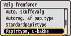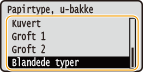 Hvis du ofte ændrer formatet for det indlagte papir, kan du angive <Blandede typer>, hvilket sparer dig besværet med at ændre indstillingen af papirtypen, hver gang du udskriver. Bemærk, at den papirtype, der er indstillet i printerdriveren, ikke kontrolleres i dette tilfælde.