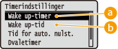 på kontrolpanelet. Du kan også bruge indstillingen til automatisk dvaletid til automatisk at sætte maskinen i dvaletilstand, hvis den ikke bruges i en angiven tidsperiode. Du kan angive indstillingerne for at ændre det interval, hvorved den automatiske dvaletidsfunktion aktiveres, eller sætte maskinen i dvaletilstand på et bestemt tidspunkt.