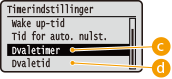 Straks efter at maskinen er blevet tændt, er længden på den tid der går, indtil maskinen går i dvaletilstand, måske længere end specificeret i menuen.