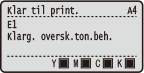 Du kan kontrollere status for affaldstonerbeholderen via <Stat., oversk.toner> under <Info om forbr.stof.>. Det anbefales, at du kontrollerer det, hvis du skal have en ny affaldstonerbeholder klar til brug før påbegyndelse af et stort udskriftsjob.