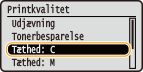 Når <Tonerbesparelse> er angivet til <Til>, kan du ikke bruge denne justeringsfunktion. Tonerbesparelse