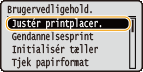 Du kan udføre "Udskrivning af positionsjusteringsprint" for at kontrollere retningen og afstanden, der skal justeres.