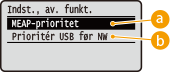 <MEAP-prioritet> eller <Prioritér USB før NW>