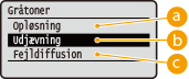Teksturens og faste toneres stabilitet kan være reduceret, hvis <Fejldiffusion> er brugt.