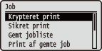 ( ) på kontrolpanelet, vises menuen Job. Du kan angive indstillingerne, der er beskrevet nedenfor, hvis maskinen er offline. |