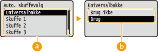 Hvis <U.bakke til bl. pap.> er indstillet til <Til>, fremføres papiret fortrinsvist fra papirskuffen, også selv om <Prioriteret u-bakke> er indstillet til <Til>.