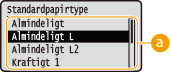 Asterisk (*)Indstillinger med en asterisk (*) vises ikke afhængigt af de andre indstillinger og afhængigt af, om der er installeret en valgfri papirfremfører på maskinen.