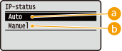 Maskinens IPv4-adresse kan enten tildeles automatisk via en dynamisk IP-adresseringsprotokol, som f.eks. DHCP, eller den kan indtastes manuelt. Hvis maskinen tilsluttes et kabelbaseret LAN, skal du kontrollere, at stikkene på LAN-kablet sættes ordentligt ind i portene (Tilslutning til et kablet LAN).
