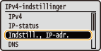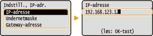 / til at navigere til det ønskede felt (et indtastningsfelt separeret af punktum), og brug taltasterne til at øge/reducere værdien.Hvis du er i tvivl om den IP-adresse, der skal angives