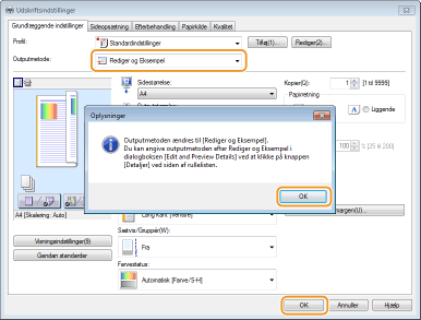 Vælg [Rediger og Eksempel] i [Outputmetode].